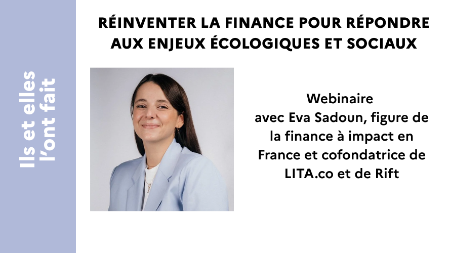 Entrepreneuse engagée, Eva Sadoun, cofondatrice de LITA.co, plateforme d’investissement dans des entreprises à impact social et environnemental, et de Rift, un outil permettant de connaître l’impact écologique de son épargne, partagera son parcours et sa vision d’une finance durable et éthique. Elle abordera également l’importance de la mobilisation collective, en évoquant notamment son rôle au sein du Mouvement Impact France et de l’association FAIR pour faire évoluer le système financier.