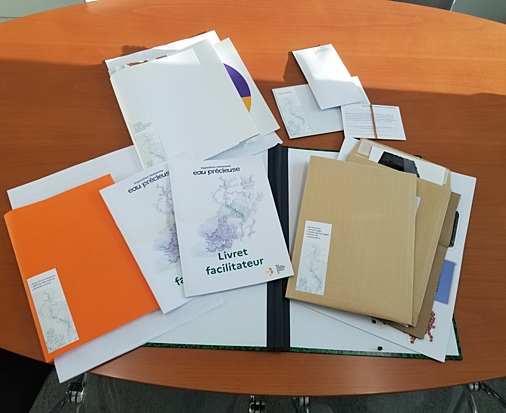 Après avoir conçu et testé l'exposition immersive, la Fabrique à Projets l'a transformé en kit papier diffusable sur les territoires, accompagné d'un livret facilitateur, pour proposer aux services volontaires de se la réapproprier en interne et d'expérimenter des usages possibles sur les territoires : contribution à un projet de territoire lié à la sobriété en eau avec des élus locaux, expérimentation dans les établissements scolaires, sensibilisation interne au sein des services, sensibilisation grand public...