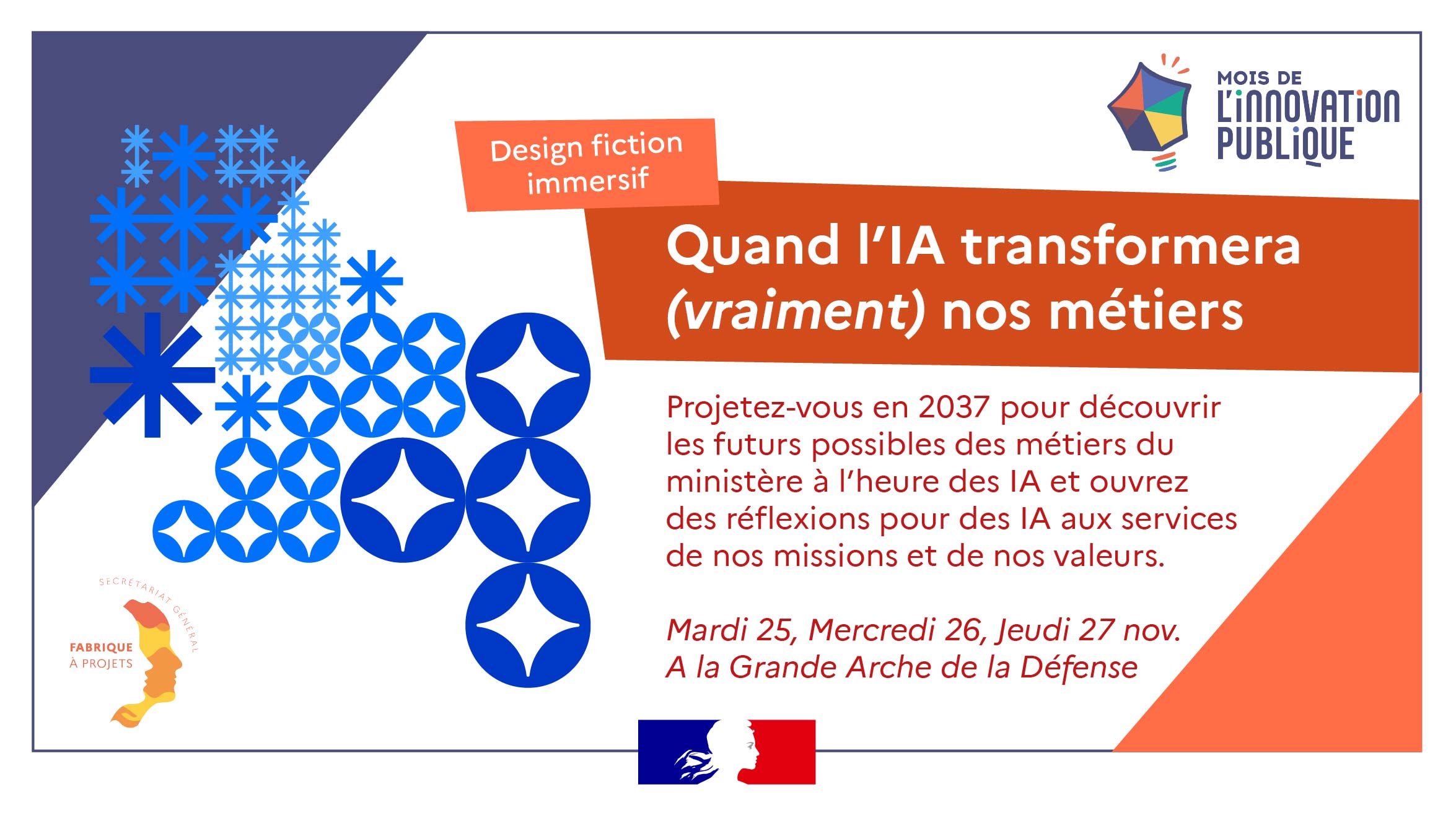 Projetez-vous en 2037 pour découvrir les futurs possibles des métiers du ministère à l’heure des IA et ouvrez des réflexions pour des IA aux services de nos missions et de nos valeurs.