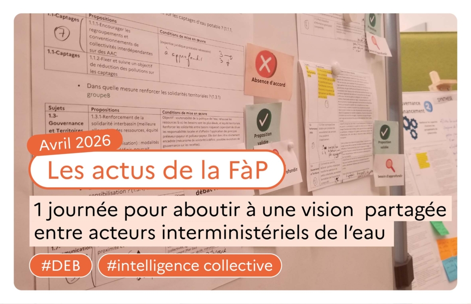 Un atelier transversal interministériel pour préparer la suite des conférences territoriales de l’eau, piloté par la DEB (Direction de l'Eau et de la Biodiversité), et conçu par la Fabrique à Projets.