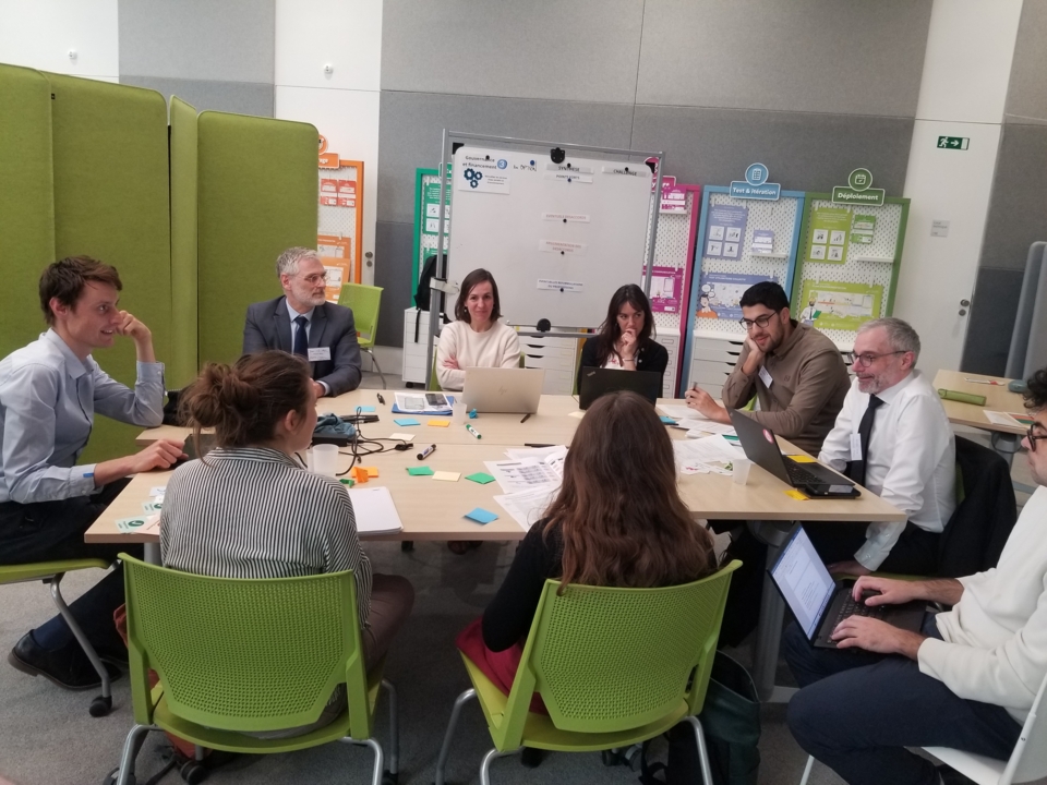 Vendredi 27 mars dernier, à l’Espace 34 de la Grande Arche de la Défense, l’atelier a réuni une 20aine de participants issus des ministères de l'agriculture, de la santé, des finances, des collectivités locales, des outre-mer, et au sein de notre pôle ministériel : plusieurs bureaux de la DEB, la DGPR et le CGDD.