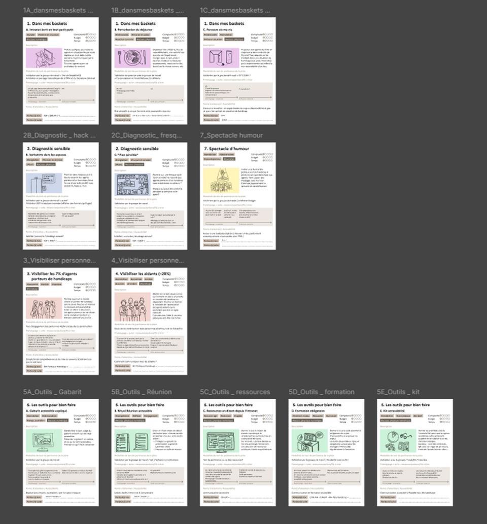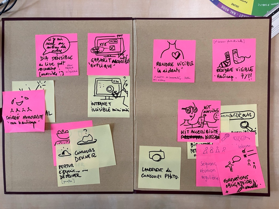 Une fois ces premières esquisses d'idées en poche, nous avons organisé un atelier avec des agents en situation de handicap pour prendre leurs retours : les idées leur paraissaient-elles pertinentes ? réalisables ? adaptées ?