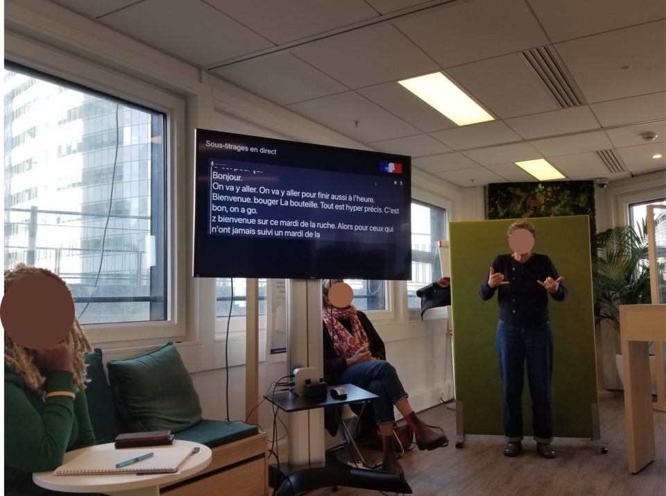 Cet évènement était équipé d'une retranscription texte en direct, ainsi que d'une interprétation en langue des signes française (LSF).