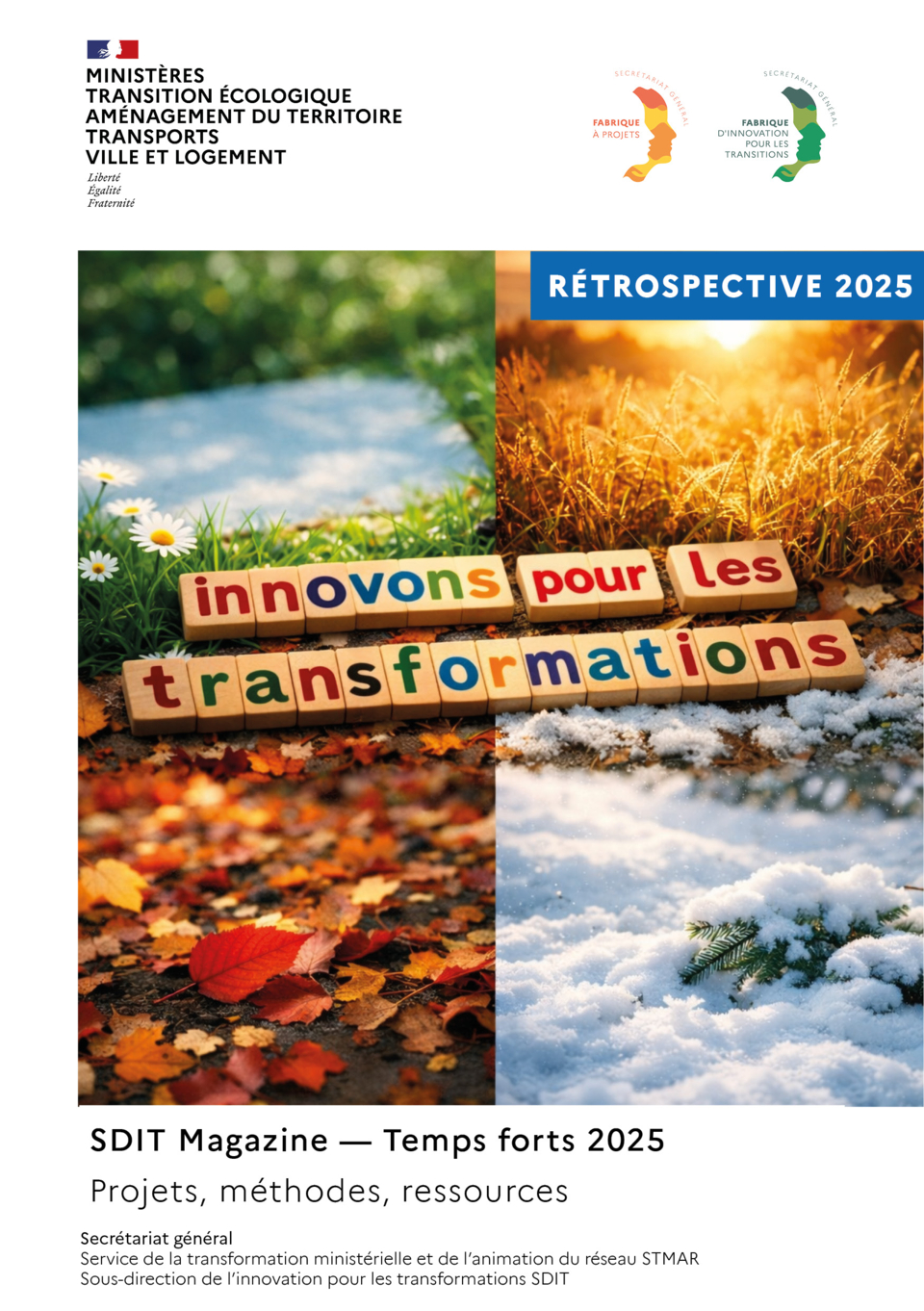 Cette rétrospective rassemble une sélection de projets, d’ateliers, de replays et de carnets de fabrique qui donnent à voir, concrètement, comment la SDIT travaille : sur le terrain, en administration centrale, en services déconcentrés, en interministériel, en réseau inter-labs, et en appui aux politiques publiques.