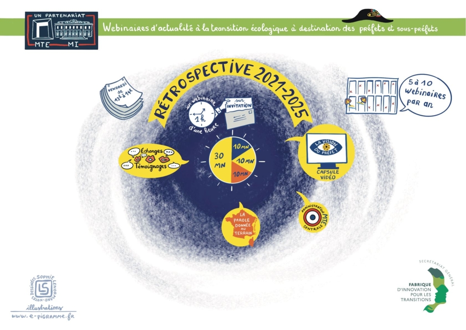 Une rétrospective des webinaires d'actualité de la transition écologique à destination des préfets et des sous-préfets organisés entre 2021 et 2025 vous est présentée sous un format innovant !